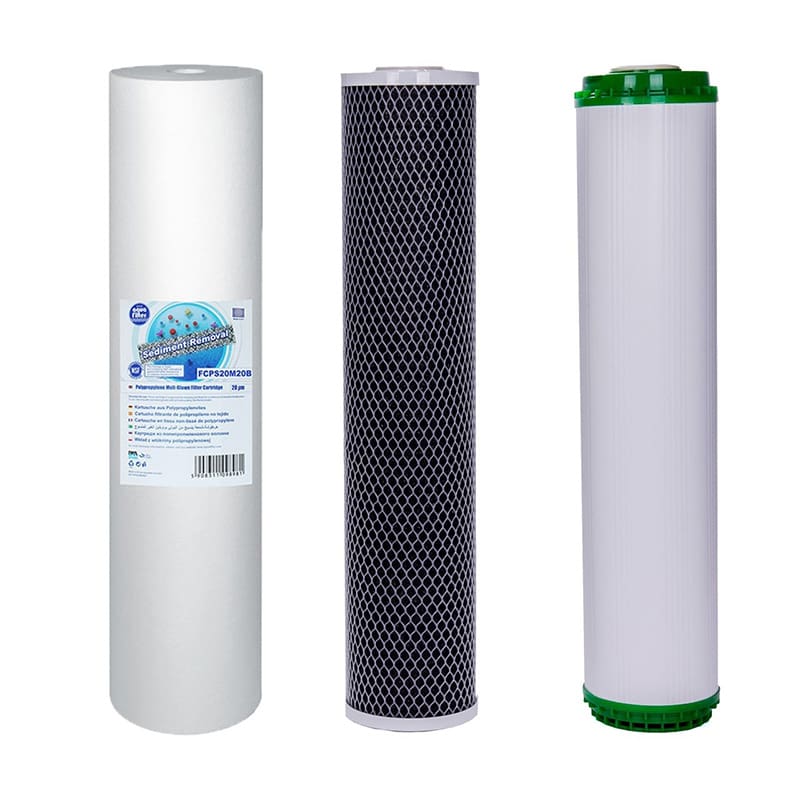 - 20 mikronos fonalas előszűrő: megszűri a vízben lévő lebegőanyagokat, az öreg csőhálózatokban felhalmozott lerakódásokat, homokot és rozsdát. A fonalas szűrő teljes keresztmetszetében szűri a szennyeződéseket, így a szűrőbetét rendkívül hatékony.